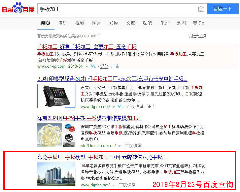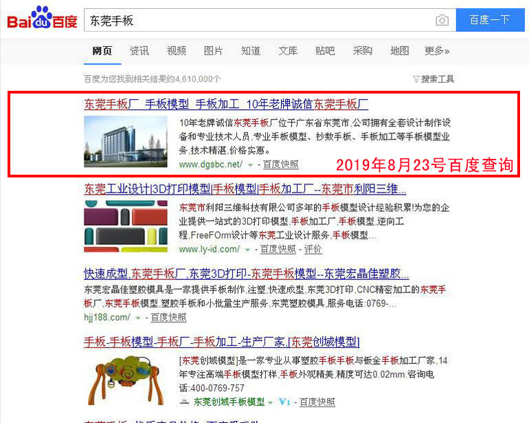 手板加工 : 2019-02-28上線 2019-03-05百度第20(原為第5頁(yè) 第7位) 2019-03-13百度第10名 2019-03-19百度第3名 2019-03-25百度第1名